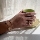 Plongez dans le monde de la sophistication avec notre bague exquise en plaqué or/argent Rocky. Cette bague plaqué or/argent unique allie l'élégance à une touche de modernité, créant ainsi un bijou plaqué or/argent qui ne manquera pas de captiver les regards. Que ce soit pour célébrer une occasion spéciale comme un cadeau d'anniversaire ou pour un événement, cette bague plaqué or/argent magnifiquement conçue, dans notre atelier parisien Shamaï, est l'expression parfaite du raffinement féminin. Voici ce que vous pourrez trouver dans notre collection: des bagues en nacre, bague en argent, bagues plaqué or, alliances, bagues de fiançailles, bague en pierres semi-précieuses…Nous espérons que vous trouverez dans notre sélection de bagues plaqué or tendances, chics, bohème, rock, glamour : le cadeau idéal ou le bijou qu’il manque à votre collection.