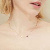Laissez-vous envoûter par la simplicité et l’élégance de notre collier PERLA. Avec ses petits médaillons brillant, la finesse de notre collier se mariera parfaitement avec vos tenues les plus délicates.