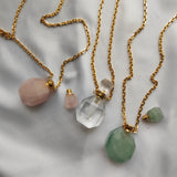 - Les pendentifs sont en Cristal de roche, Quartz rose et Aventurine