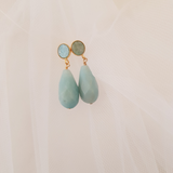 Succombez aux magnifiques amazonite de nos boucles d'oreilles Zephyra. Sa silhouette en forme de goutte verte d'eau apportera de l'élégance à vos tenues de saison.